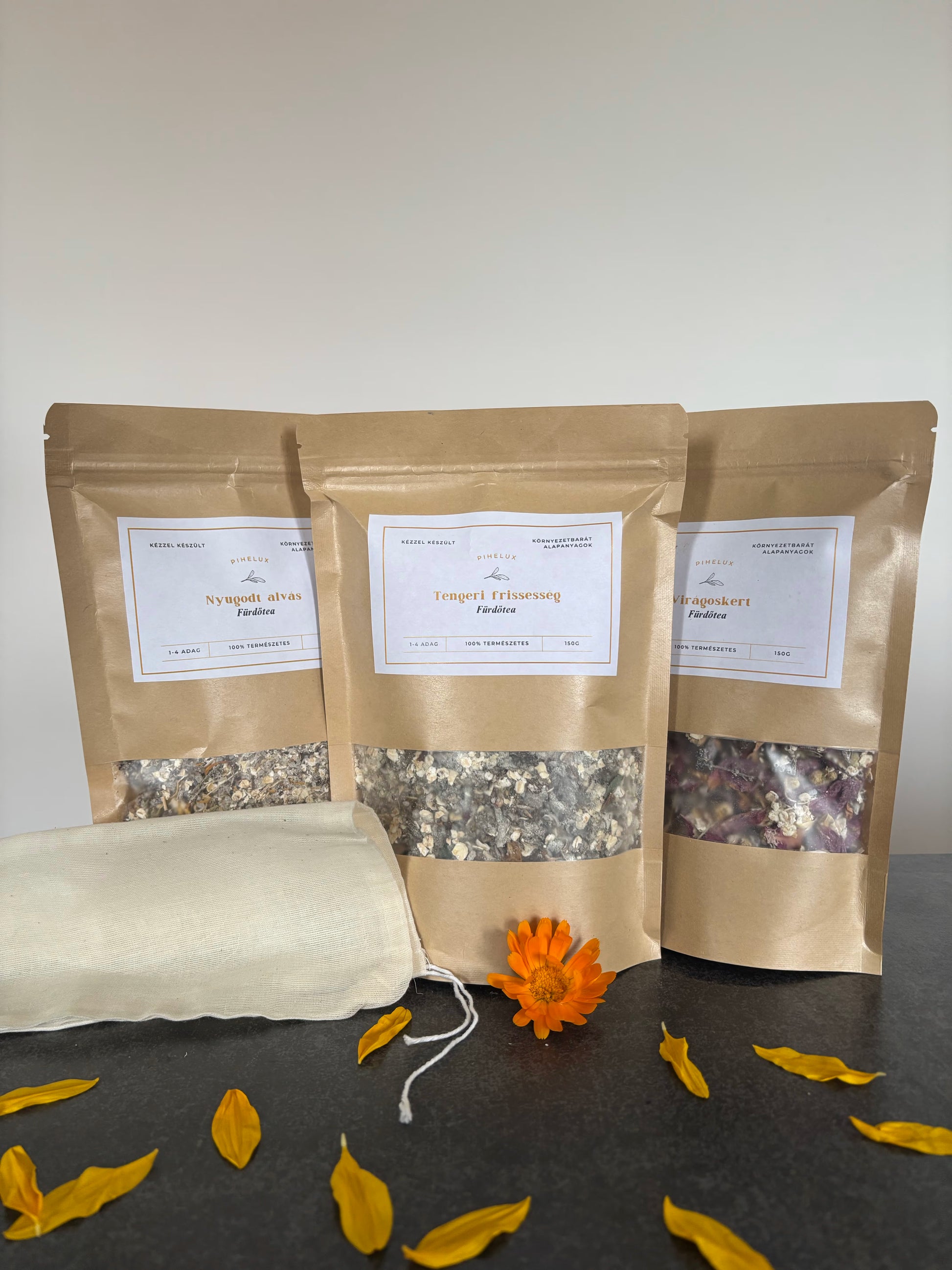 Csak a természet legjava. Minden fürdőtea 100%-ban természetes, bőrbarát összetevőkből készül, adalékanyagok, hozzáadott aromák és mesterséges illatanyagok nélkül. Nem tartalmaz allergéneket, így érzékeny bőrre is biztonsággal használható.