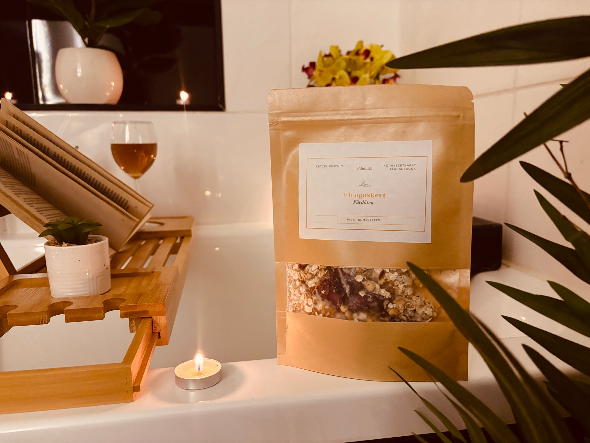 Nyisd ki a tasakot, hajolj közel, és hagyd, hogy az illatok egy pillanatra megállítsák az időt. Ezzel a nyugalom első lépését teszed meg. Ha már átjárt a finom illat öntsd a fürdőteát a csomaghoz tartozó zsákba – ez lesz a saját kis fürdőrituáléd alapja.