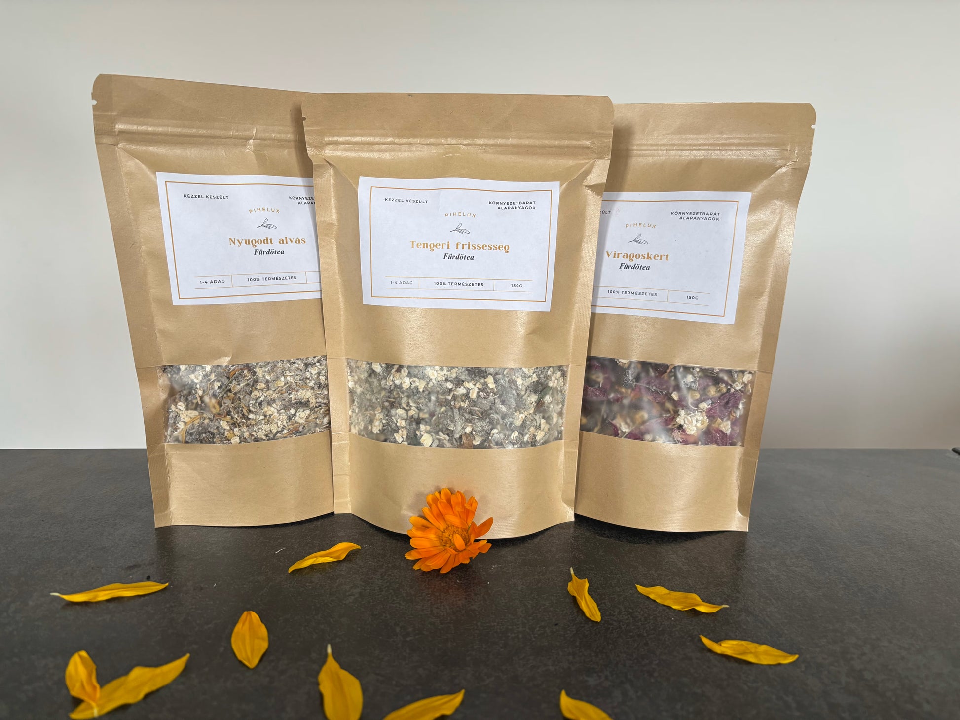 Lépj be a PiheLux világába ezzel az exkluzív kezdőcsomaggal, amely mindhárom gondosan összeállított fürdőtea-élményt kínál – egy-egy adag formájában.
